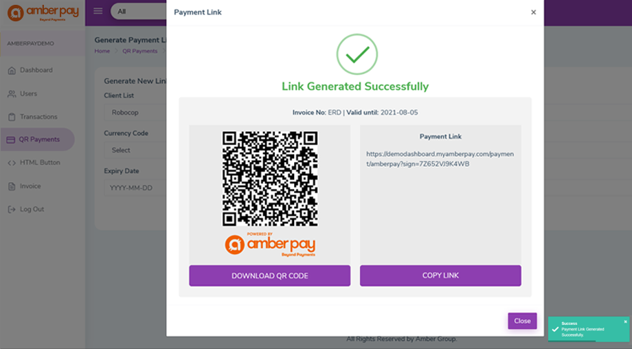 Amber Pay eLink is a digital payment solution that allows merchants to accept electronic payments via payment links, invoices, and payment buttons.